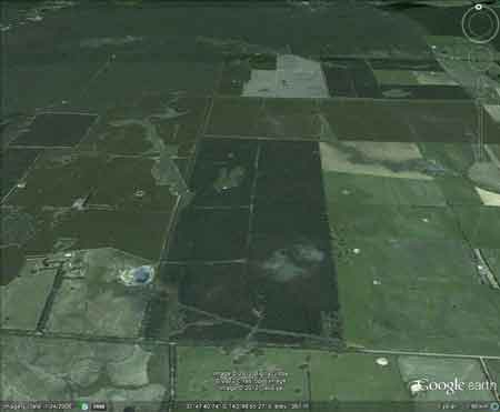 Hancock's Mount Mercer plantation surrounded by recently plantation bluegum plantations to the west and north. Located on flat land, probably established on ex-pasture site.