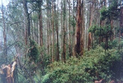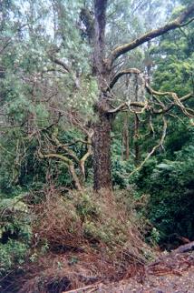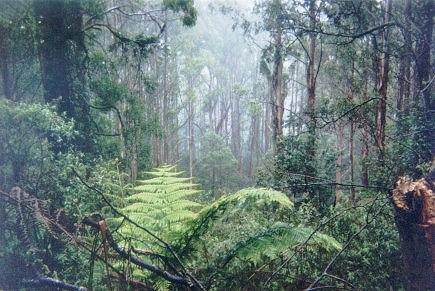 Hancock Watch Site Visit Dec 00. Notes on Filmy Maidenhair found in this plantation on Deadlock Creek. (The largest colony of the fern, with an area of around 3.0 m2, is situated within the Allambee Plantation, Mt Worth Block, an area managed by Hancock Victorian Plantations. The surrounding streamside vegetation is currently protected by Regional prescriptions and the Code of Forest Practices 1989, which excludes timber extraction operations from streamside buffers and steep slopes. The streamside vegetation along Deadlock Creek, part of the system of corridors of native forest within the surrounding plantation, protects an undisturbed deep gully supporting a rich fern flora. Twenty-four different fern species have been noted growing near the colony (DCE, Central Gippsland) including Slender Tree-fern (Cyathea cunninghamii), classed as a rare species in Victoria (Gullan et al. 1990)).